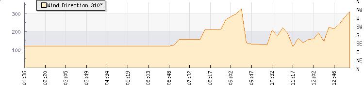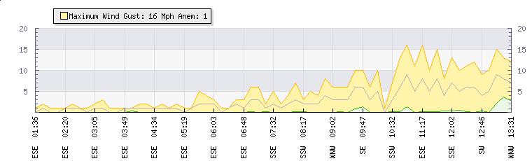 In the last few minutes the wind was South Easterly at an average speed of 8 mph, reaching up to 15 mph and a low of 0 mph. The gust strength is15 mph above the minimum speed |