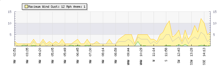 In the last few minutes the wind was South Westerly at an average speed of 1 mph, reaching up to 3 mph and a low of 0 mph. The gust strength is3 mph above the minimum speed |