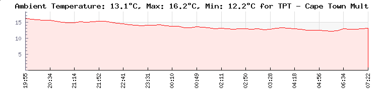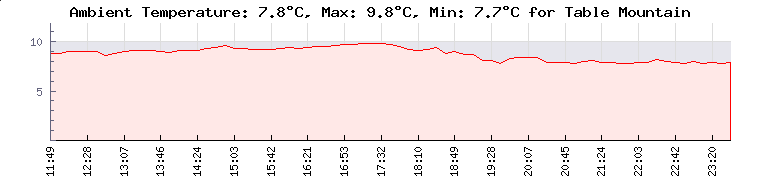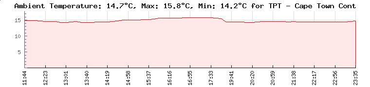 Minimum Temperatures: Lalele Crocodile Farm -Naboomsp: -17.8°C | uMkhuze Game Reserve Airstrip: 1°C | Belle-Vue-Avontuur: 10.5°C | Formosa: 11.9°C | Maximum Temperatures: TPT - Durban Pier 1: 28.1°C | JCS WS1 Upington: 28.1°C | TPT - Maydon Wharf Multipurpose: 27.6°C | Saalskop: 27.3°C | ...