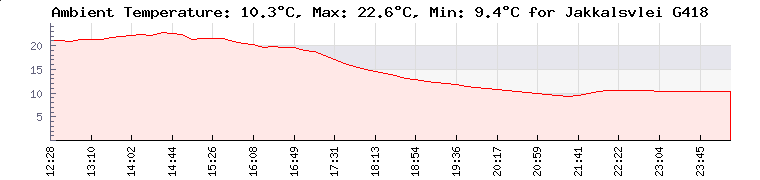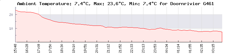 Minimum Temperatures: Lalele Crocodile Farm -Naboomsp: -17.8°C | uMkhuze Game Reserve Airstrip: 1°C | Belle-Vue-Avontuur: 10.5°C | Formosa: 11.9°C | Maximum Temperatures: TPT - Durban Pier 1: 28.1°C | JCS WS1 Upington: 28.1°C | TPT - Maydon Wharf Multipurpose: 27.6°C | Saalskop: 27.3°C | ...