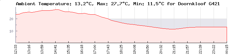 Minimum Temperatures: uMkhuze Game Reserve Airstrip: 1°C | Benson Farm: 12.6°C | Belmont Farm: 12.8°C | PSP Runway: 12.9°C | Maximum Temperatures: Agrien Goudini: 31.9°C | Mooivallei: 31.8°C | dw huis: 29.2°C | Slangdraai: 28.3°C | ...