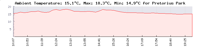 Minimum Temperatures: uMkhuze Game Reserve Airstrip: 1°C | Klipfontein New: 2.6°C | Mistkraal: 3.7°C | Finella Falls : 4°C | Maximum Temperatures: FA - TBA: 39.2°C | Skoorsteenberg Airfield: 37.5°C | 007 Rietfontein: 36.9°C | 014 Kgalagadi Lodge: 36.9°C | ...