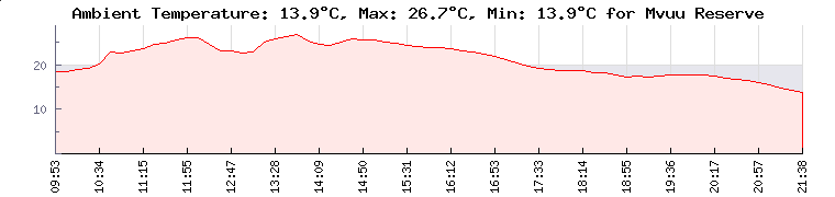 Minimum Temperatures: Lalele Crocodile Farm -Naboomsp: -17.8°C | uMkhuze Game Reserve Airstrip: 1°C | Kromdrift Farm: 10.7°C | Goschen: 11°C | Maximum Temperatures: SATCT 2 SUURPOOTJIE: 41.5°C | Skoorsteenberg Airfield: 40.8°C | CKI Oudtshoorn: 40.6°C | DJW Boondocks: 40.6°C | ...