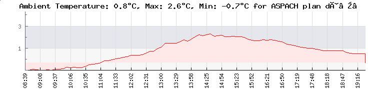 Températures minimales: La Ferriere: -1.9°C | ASPACH plan d’eau: -0.8°C | Villar Loubière: 1.5°C | CHOTO Pleine Bise: 2.9°C | Tarerach Club Aligers: 3.5°C | Températures maximales : La Ferriere: 14.5°C | Thollon TLC: 11.5°C | CHOTO Pleine Bise: 8.7°C | Villar Loubière: 8.5°C | Tarerach Club Aligers: 5.4°C | ...