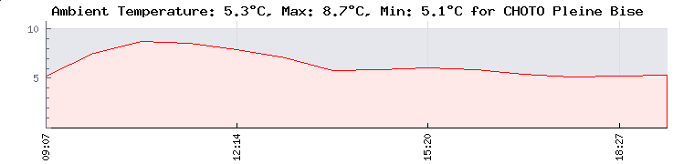 Températures minimales: La Ferriere: -1.9°C | ASPACH plan d’eau: -0.8°C | Villar Loubière: 1.5°C | CHOTO Pleine Bise: 2.9°C | Tarerach Club Aligers: 3.5°C | Températures maximales : La Ferriere: 14.5°C | Thollon TLC: 11.5°C | CHOTO Pleine Bise: 8.7°C | Villar Loubière: 8.5°C | Tarerach Club Aligers: 5.4°C | ...